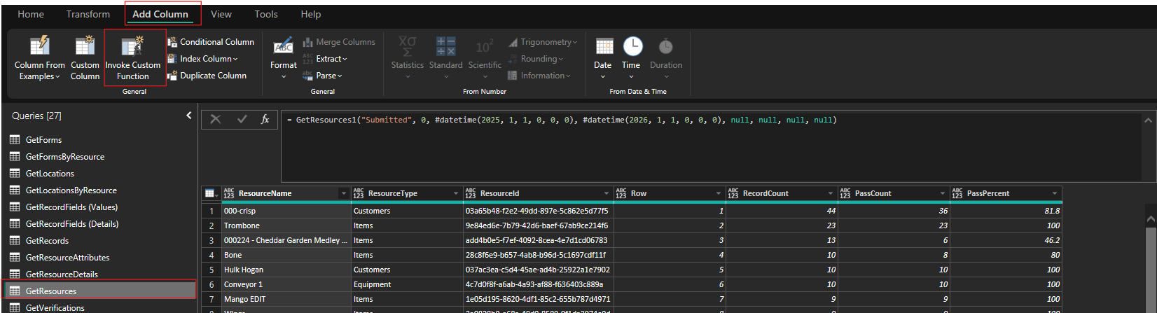 - Navigate to the table and under Add Column > Click Invoke Custom Function